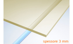 Pannello in policarbonato compatto LYX® trasparente protetto UV, con spessore di 3 mm, dimensione configurabile a piacere, tagliato a misura e consegnato a domicilio.